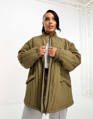 ASOS DESIGN Curve – Pikowana prosta kurtka bawełniana w kolorze khaki