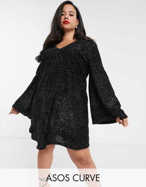 ASOS DESIGN Curve – Połyskująca sukienka mini z rękawami typu dzwonek