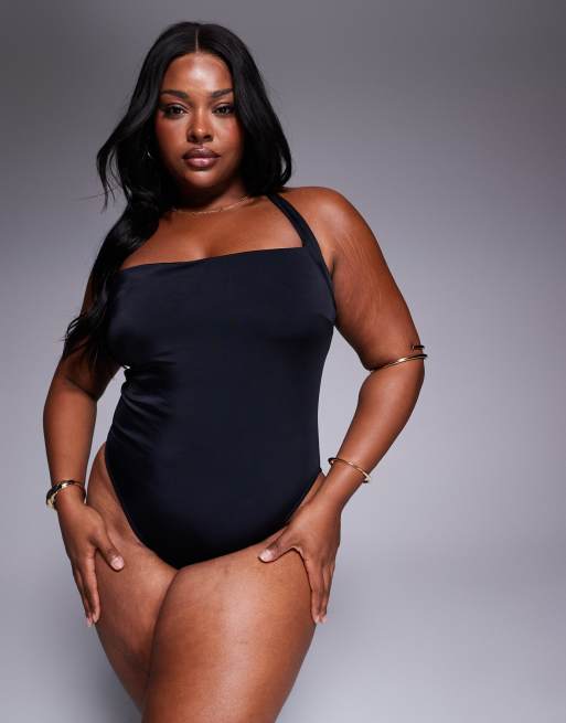 ASOS DESIGN Curve – Revenge – Czarny strój kąpielowy z wiązanym na szyi dekoltem typu halter