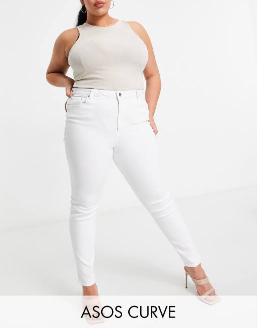 ASOS DESIGN Curve Ridley – Śnieżnobiałe jeansy o obcisłym kroju z podwyższonym stanem