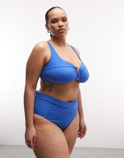 ASOS DESIGN Curve – Rory – Niebieskie prążkowane bikini