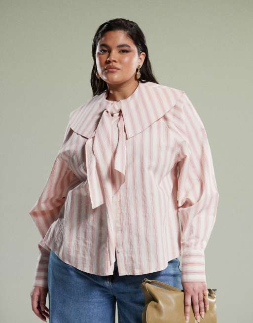 ASOS DESIGN Curve – Różowa koszula z dużym kołnierzem i wiązaniem w paski