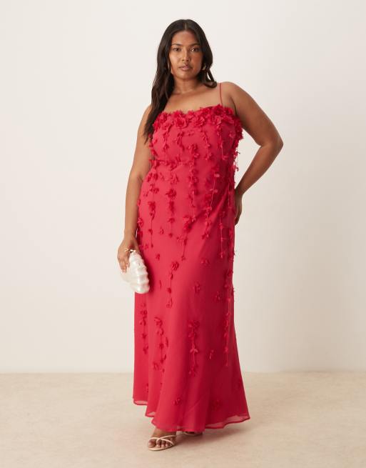 ASOS DESIGN Curve – Różowa sukienki maxi na ramiączkach zdobiona kwiatkami