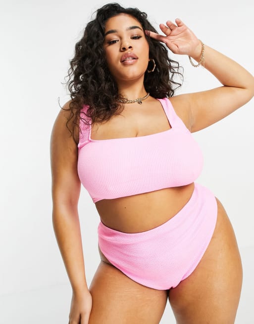 ASOS DESIGN Curve – Różowe marszczone bikini