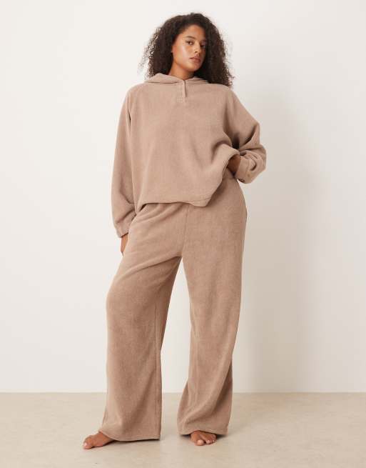 ASOS DESIGN Curve – Różowobrązowe domowe spodnie z szerokimi nogawkami z mikropolaru