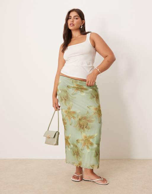 ASOS DESIGN Curve – Siateczkowa spódnica midi w duży kwiatowy wzór