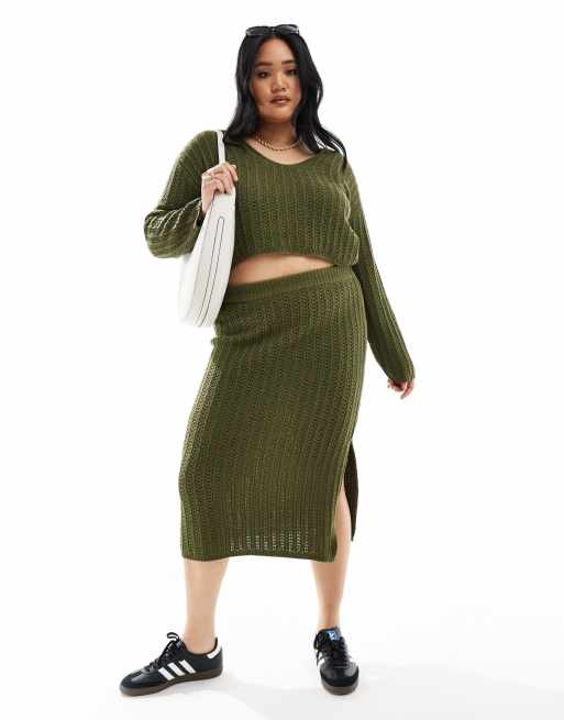 ASOS DESIGN Curve – Spódnica midi z ażurowej dzianiny, część zestawu
