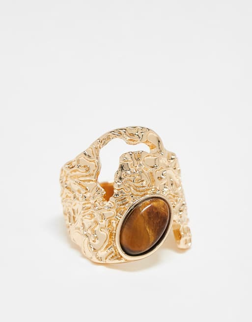 ASOS DESIGN Curve – Szeroki teksturowany pierścionek w odcieniu złota z imitacją kamienia półszlachetnego