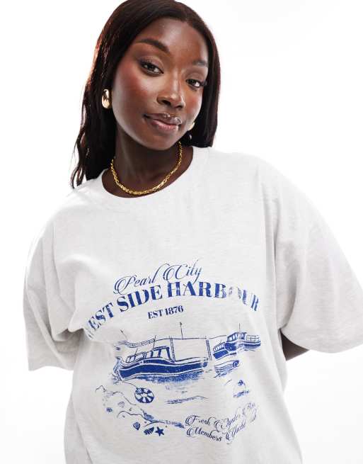 ASOS DESIGN Curve – T-shirt oversize z nadrukiem łodzi w porcie