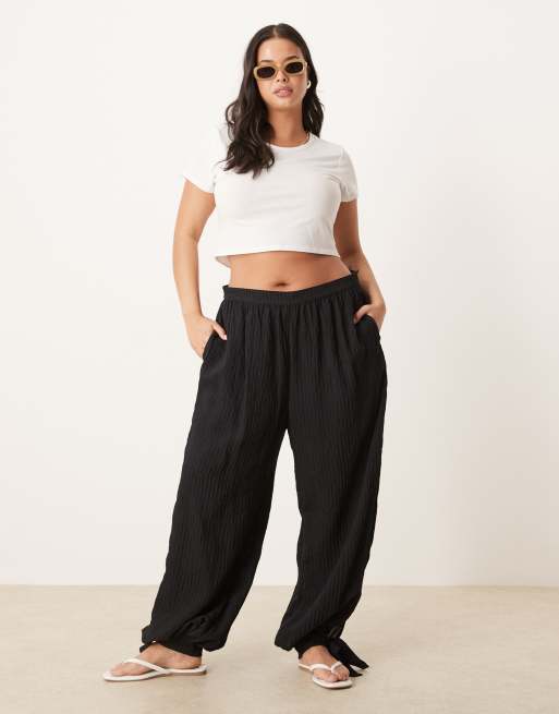 ASOS DESIGN Curve – Teksturowane czarne spodnie w paski z mankietami