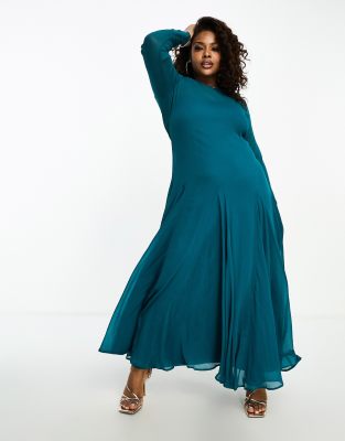 ASOS DESIGN Curve – Turkusowa prześwitująca sukienka szyfonowa maxi