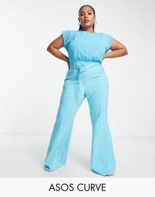 ASOS DESIGN Curve – Turkusowy kombinezon z rozszerzanymi nogawkami, szyfonową górą i paskiem