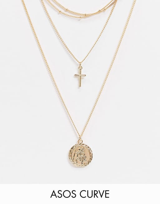 ASOS DESIGN Curve Wielorzędowy naszyjnik w złotym kolorze