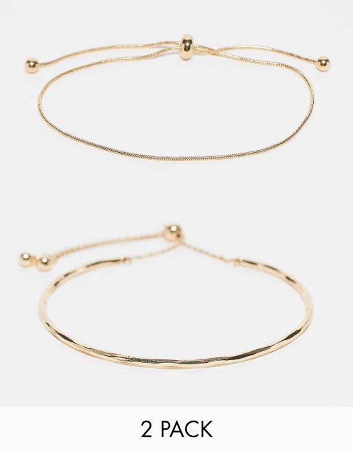 ASOS DESIGN Curve – Zestaw 2 bransoletek z troczkiem w kolorze złota