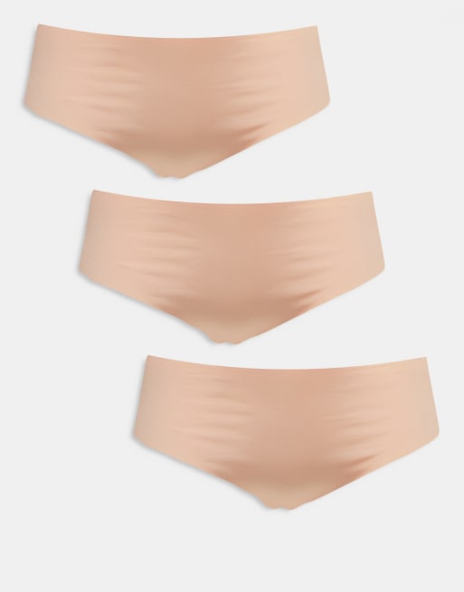 ASOS DESIGN Curve – Zestaw 3 par niewidocznych pod ubraniem beżowych fig brazylijskich z koronką
