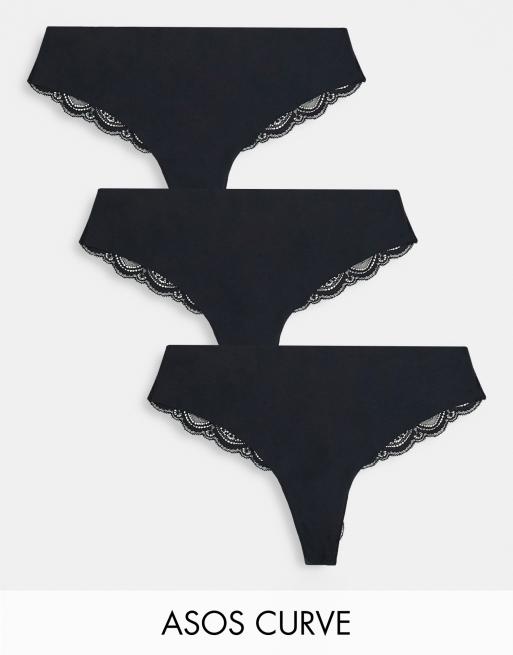 ASOS DESIGN Curve – Zestaw 3 par niewidocznych pod ubraniem fig brazylijskich z koronką