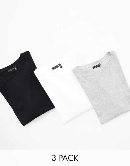 ASOS DESIGN Curve – Zestaw 3 T-shirtów z okrągłym dekoltem z mieszanki bawełny – w zestawie taniej - MULTI