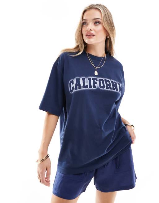 ASOS DESIGN – Granatowy T-shirt oversize z napisem „California" z efektem sprayowania