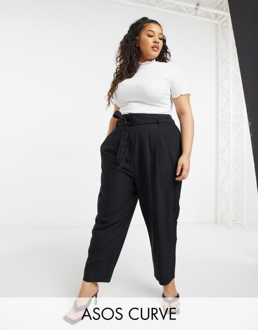 ASOS DESIGN – Szyte na miarę zwężane spodnie z wiązaniem w talii o długości przed kostkę