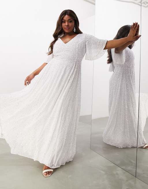 ASOS EDITION – Curve – Sukienka ślubna maxi z cekinami i powiewnymi rękawami