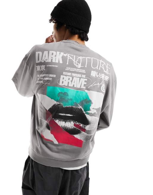 ASOS Dark Future – Szara bluza oversize z nadrukiem na plecach