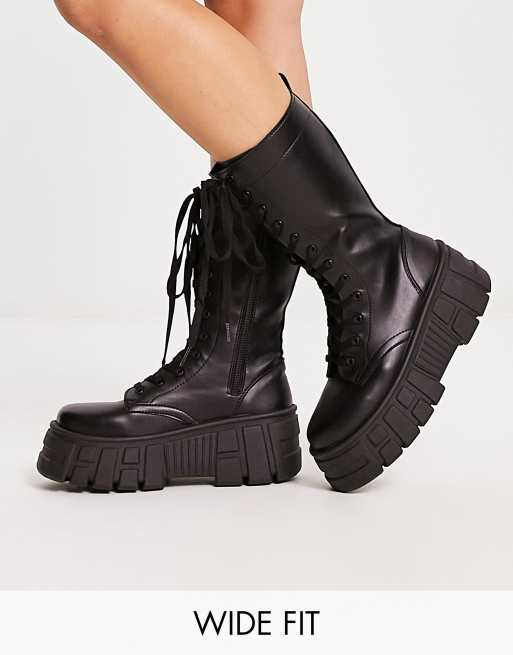ASOS DESIGN Wide Fit – Athens 3 – Czarne sznurowane buty na masywnej podeszwie