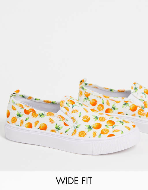 ASOS DESIGN Wide Fit – Dotty – Wsuwane tenisówki we wzór w owoce