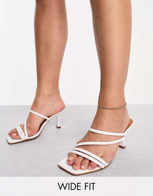 ASOS DESIGN Wide Fit – Hartley – Białe sandały z pasków bez pięty na średnim obcasie