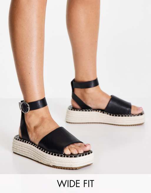 ASOS DESIGN Wide Fit – Joyful – Czarne espadryle na płaskiej platformie