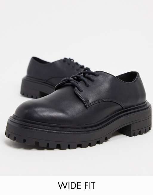 ASOS DESIGN Wide Fit – Money – Czarne sznurowane płaskie buty na grubej podeszwie
