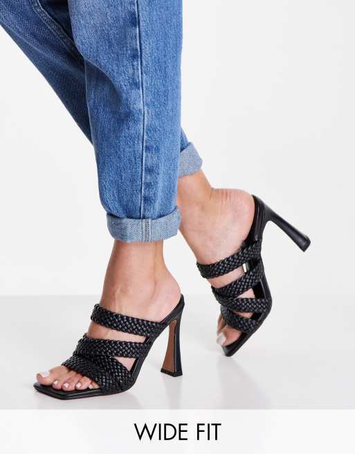 ASOS DESIGN Wide Fit – Nuclear – Czarne klapki na wysokim obcasie, z plecionymi paskami