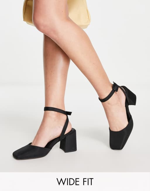 ASOS DESIGN Wide Fit – Stelle – Czarne buty na średnim klockowym obcasie