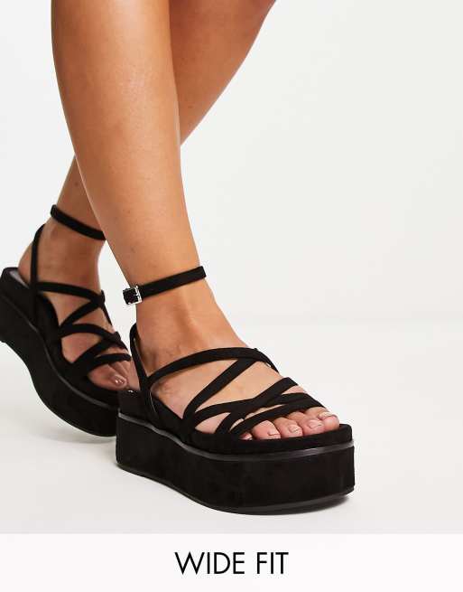 ASOS DESIGN Wide Fit – Taurus – Czarne sandały z paseczkami na płaskiej platformie