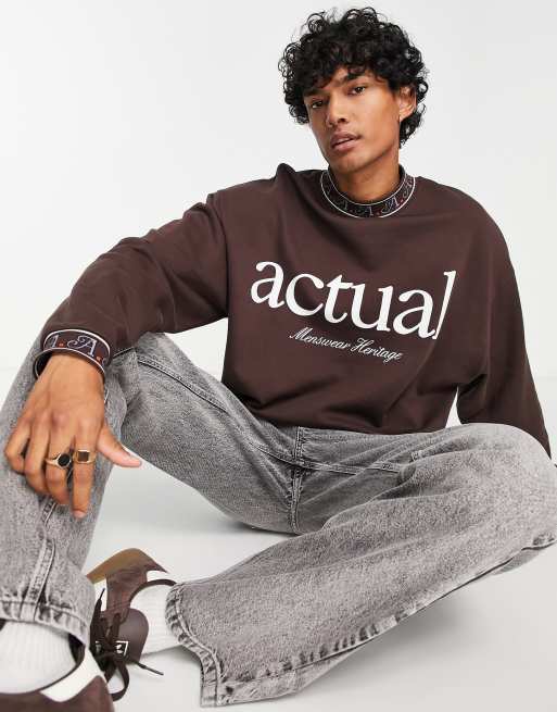 ASOS Actual – Brązowa bluza oversize z nadrukiem logo na ściągaczach