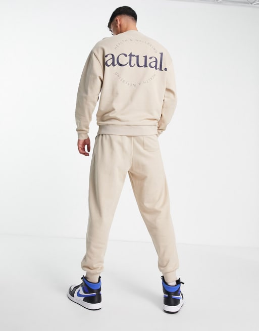ASOS Actual – Zestaw z neutralnym kolorze z dużym logo na plecach