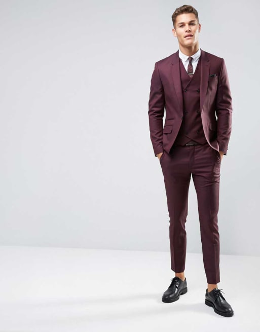 ASOS – Ciemnojagodowy obcisły garnitur w 100% z wełny