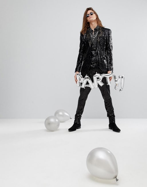 ASOS – Czarny cekinowy garnitur o bardzo obcisłym kroju ze złotym wykończeniem