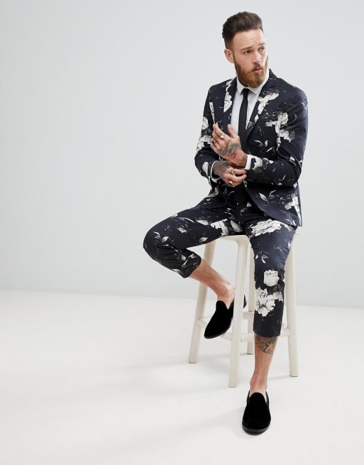 ASOS – Czarny obcisły garnitur z fotograficznym nadrukiem