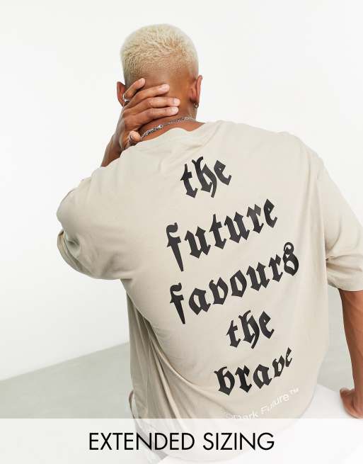 ASOS Dark Future – Beżowy T-shirt oversize z gotyckim napisem na plecach, część zestawu