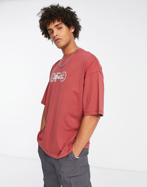 ASOS Dark Future – Bordowy T-shirt oversize z nadrukiem z logo z przodu