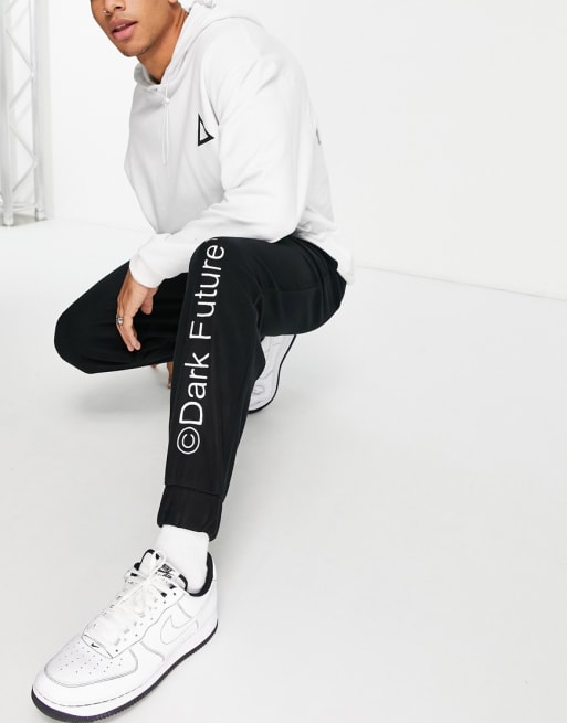 ASOS Dark Future – Czarny zestaw z polarowym wykończeniem i wyhaftowanym logo
