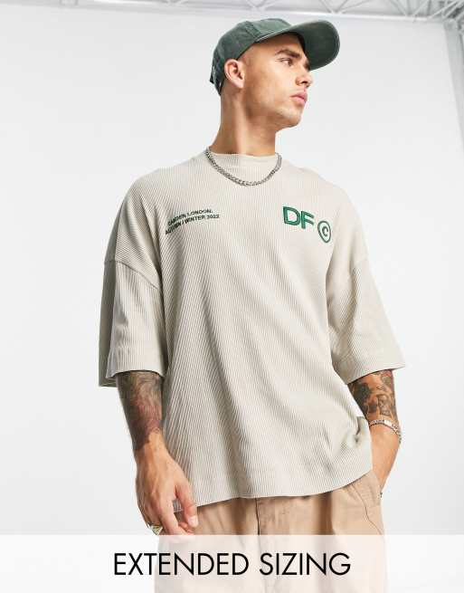 ASOS Dark Future – T-shirt oversize z prążkowanego dżerseju w neutralnym kolorze z haftem z logo