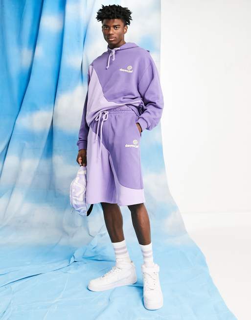 ASOS Daysocial – Fioletowe szorty oversize z kapturem i zaokrąglonymi wstawkami – Część zestawu