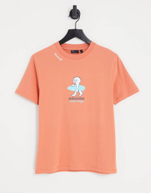 ASOS Daysocial – Pomarańczowy obcisły T-shirt z grafiką z surferem i wyhaftowanym logo