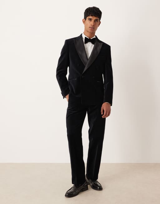 ASOS DESIGN – Aksamitne czarne smokingowe spodnie garniturowe z prostymi nogawkami z mieszanki bawełny