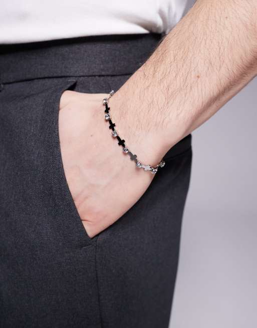 ASOS DESIGN – Łańcuszkowa bransoletka w srebrnym kolorze z krzyżykami i kryształkami