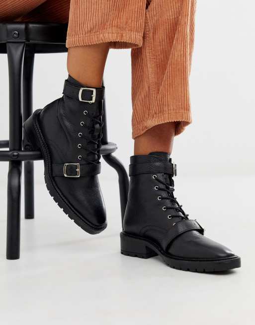 ASOS DESIGN – Astrid – Czarne skórzane buty militarne z grubą podeszwą