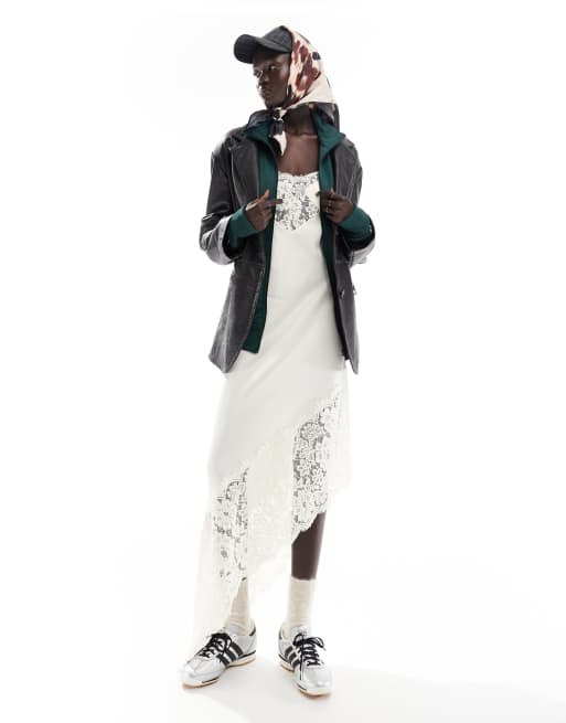 ASOS DESIGN – Asymetryczna satynowa spódnica maxi z satyny i koronki w kolorze ecru