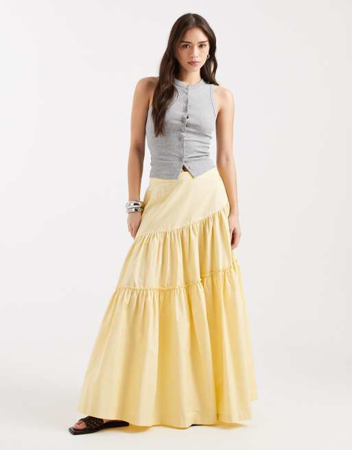 ASOS DESIGN – Asymetryczna warstwowa spódnica maxi w maślanym kolorze w stylu boho