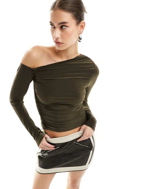ASOS DESIGN – Asymetryczny top w kolorze khaki